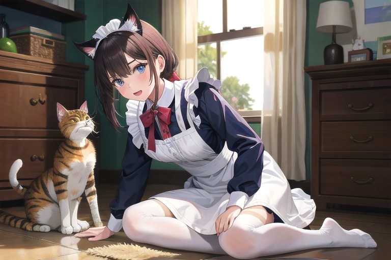4枚目 1girl,cat,maid,