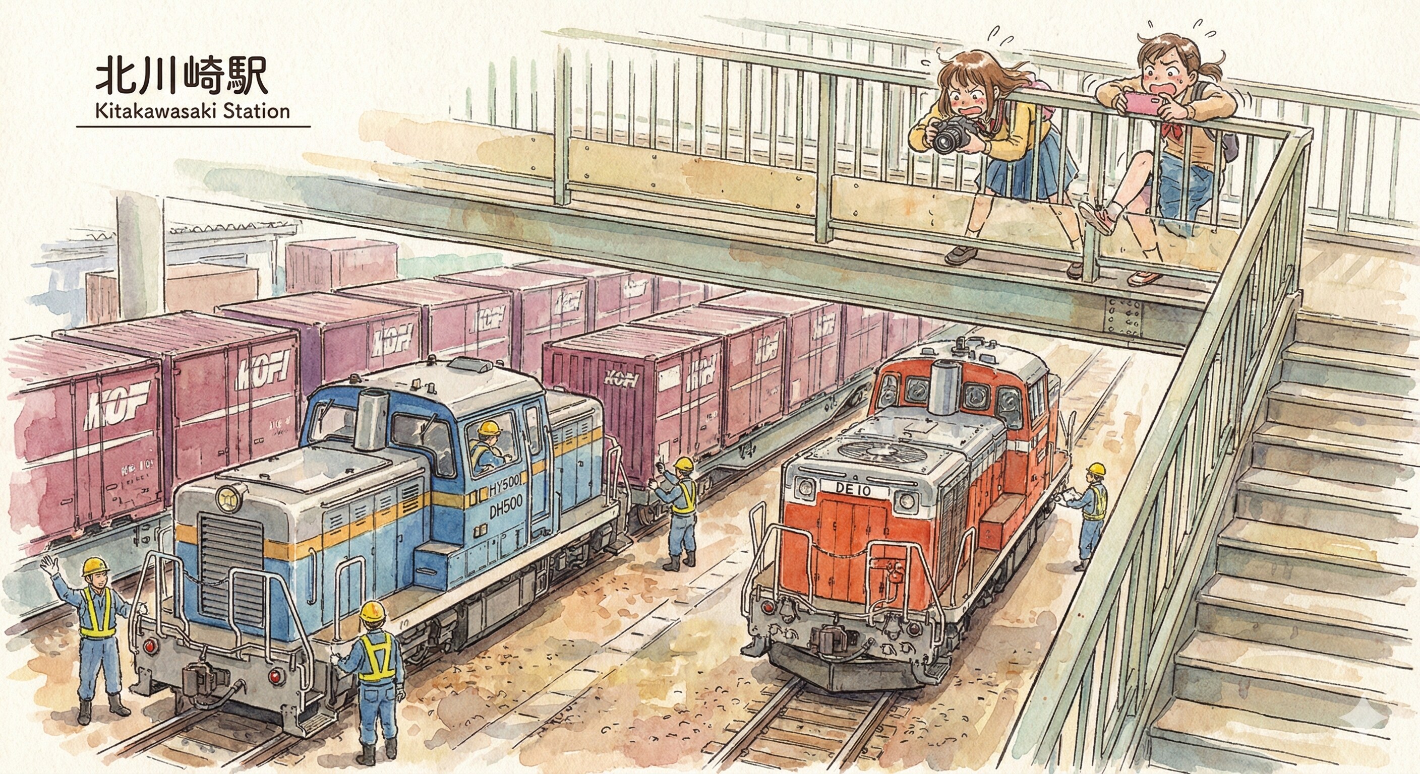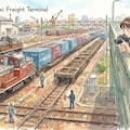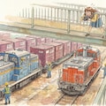 貨物駅と機関車。