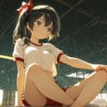 jacket partially removed, heart in eye, burnt clothes, holding fishing rod, kanji, doujin cover, pentagram, tape gag, adjusting headwear, red socks, friends, cloud print, coke-bottle glasses, oral invitation, competition school swimsuit, barbell piercing, gradient legwear, prisoner, blood on breasts, wind chime, carrying over shoulder, tape measure, flaming weapon