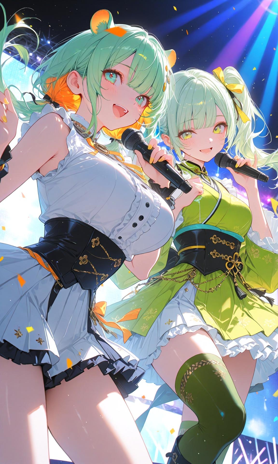 可愛らしい萌葱 喜緑ちゃんとうちのヒスイちゃんには「アイドル」と「緑髪」という共通点があったので仲良く歌ってるシーンを描かせて頂きました