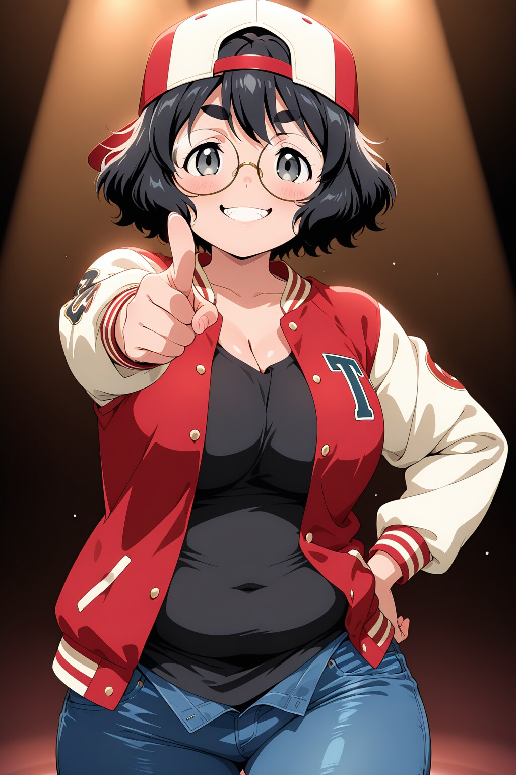 (posing on stage, dramatic spotlight, clean black gradient background, dramatic shading, Tyndall phenomenon)/黒背景、ステージ、上からスポットライト、チンダル現象★