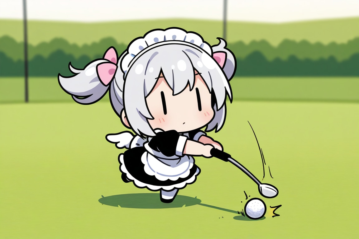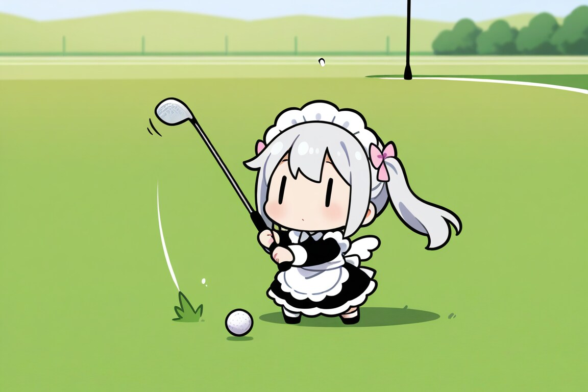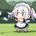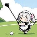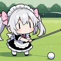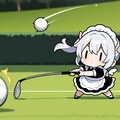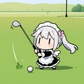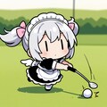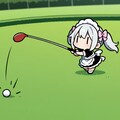 ゴルフで奮闘するチビメイドさん