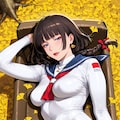 jacket partially removed, heart in eye, burnt clothes, holding fishing rod, kanji, doujin cover, pentagram, tape gag, adjusting headwear, red socks, friends, cloud print, coke-bottle glasses, oral invitation, competition school swimsuit, barbell piercing, gradient legwear, prisoner, blood on breasts, wind chime, carrying over shoulder, tape measure, flaming weapon