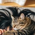 プロンプトは調整だらけで当初のイメージが上手くいかなくて、方針転換しておでこ寝にゃんにゃんにしたの。