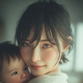 雨が雫(長女)を抱いてあやす。