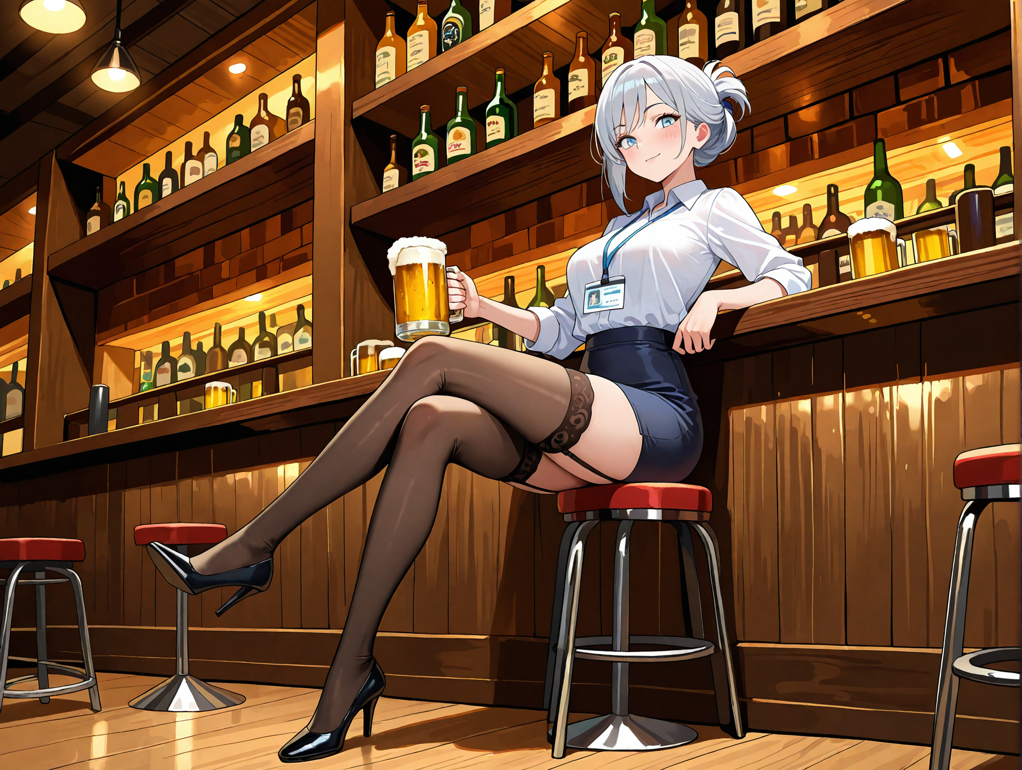 行きつけのBARでビールを飲んで顔が赤くなるほど酔っている状態