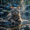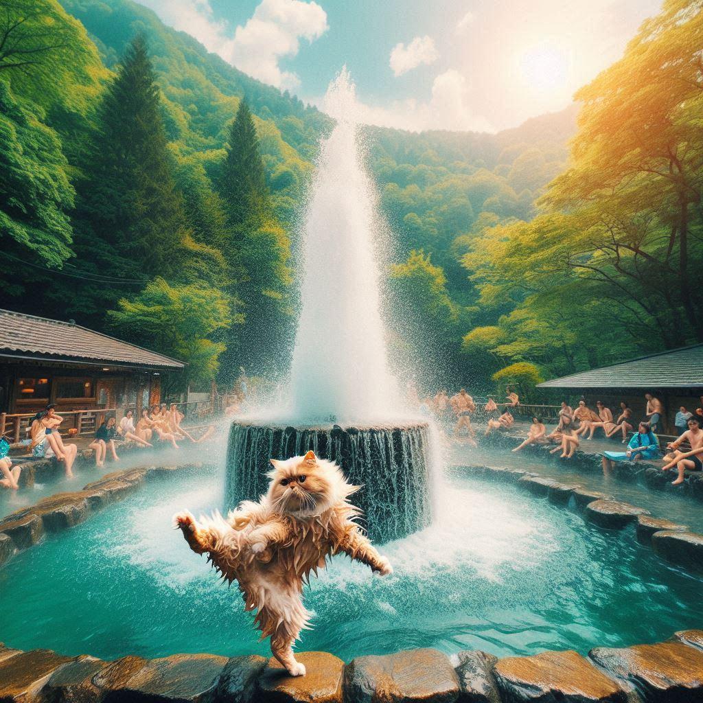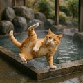 温泉に入る猫