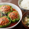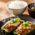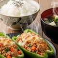 摩訶不思議食堂のピーマンの肉詰め定食