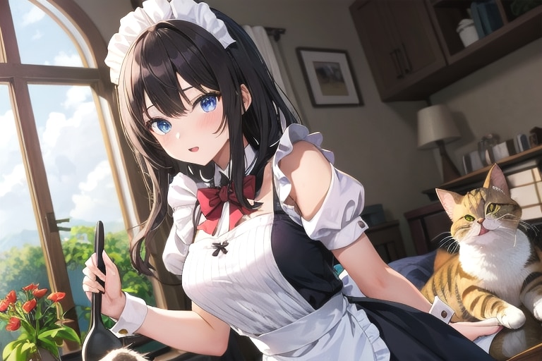 4枚目 1girl,cat,maid
