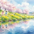 電車で10分くらいのところに川沿いに菜の花と桜が同時に楽しめる場所があります。