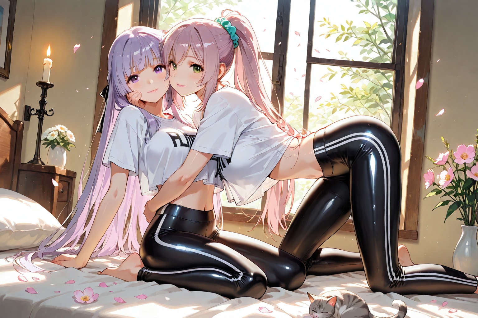 ほい様の企画名のうちの子たちと守岸人様の企画名の女の子同士でとちちぷい投稿企画の猫と一緒、BONSAIを我が家の家族❗️(もう絵梨奈ちゃんも芹奈さんはちちぷい生成者福神の家族も同然です❤️)絵梨奈ちゃん芹奈さん姉妹で生成しました👍