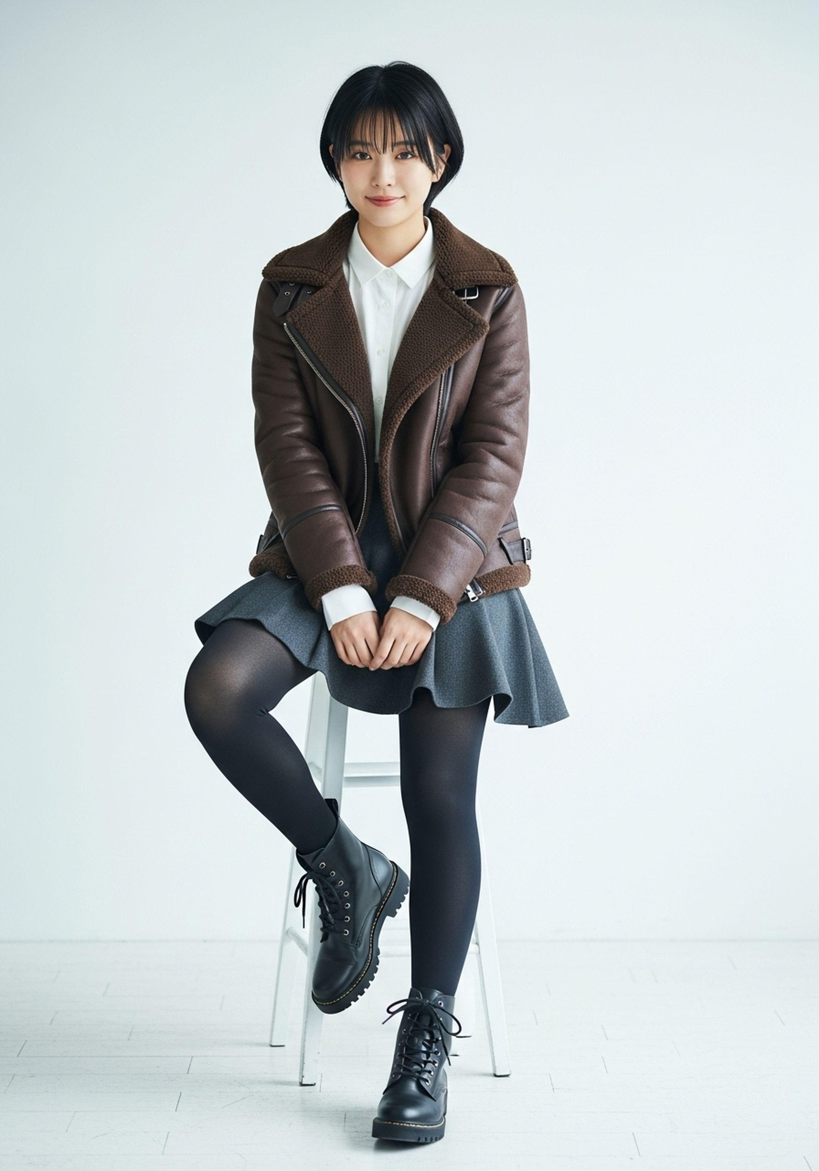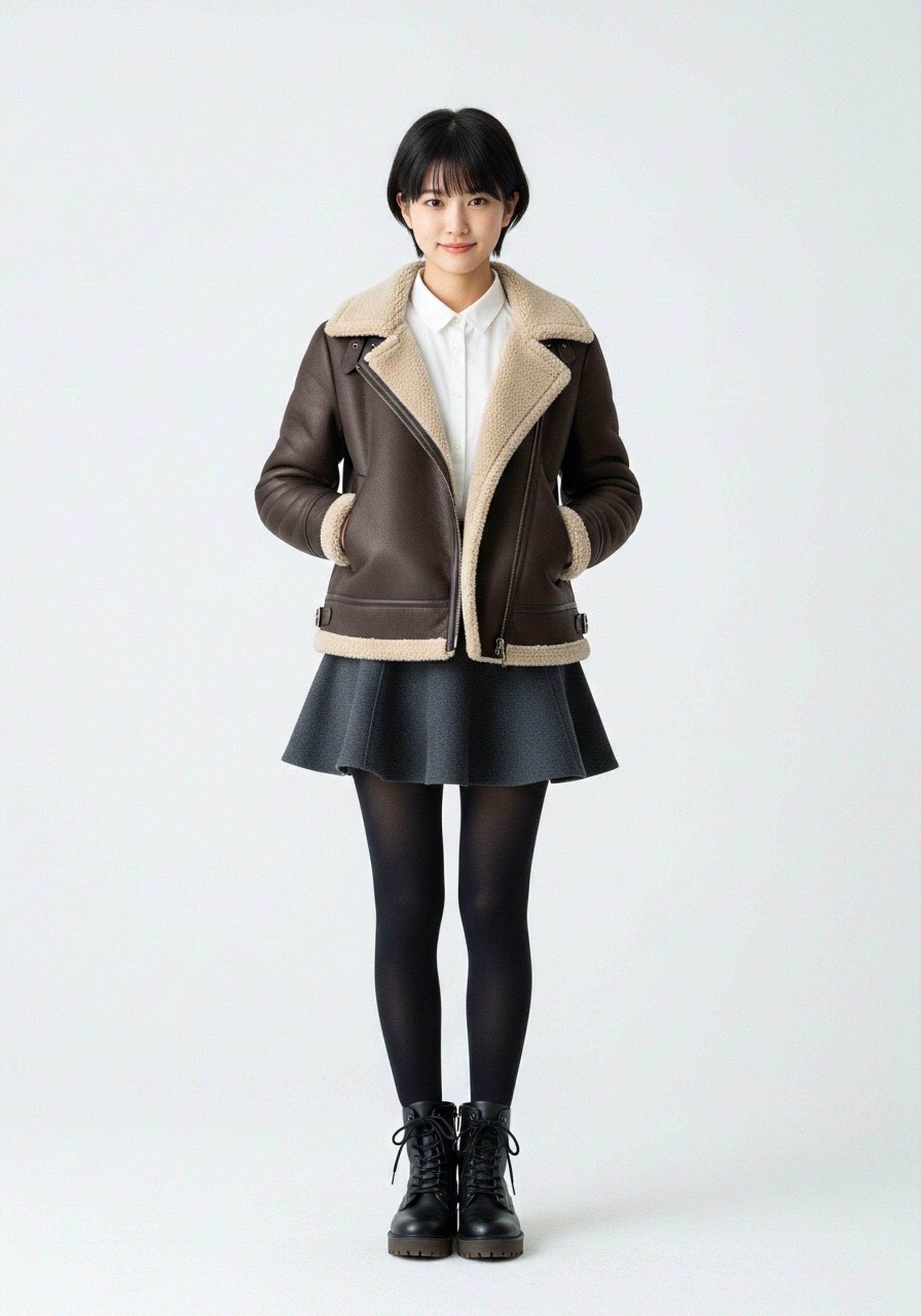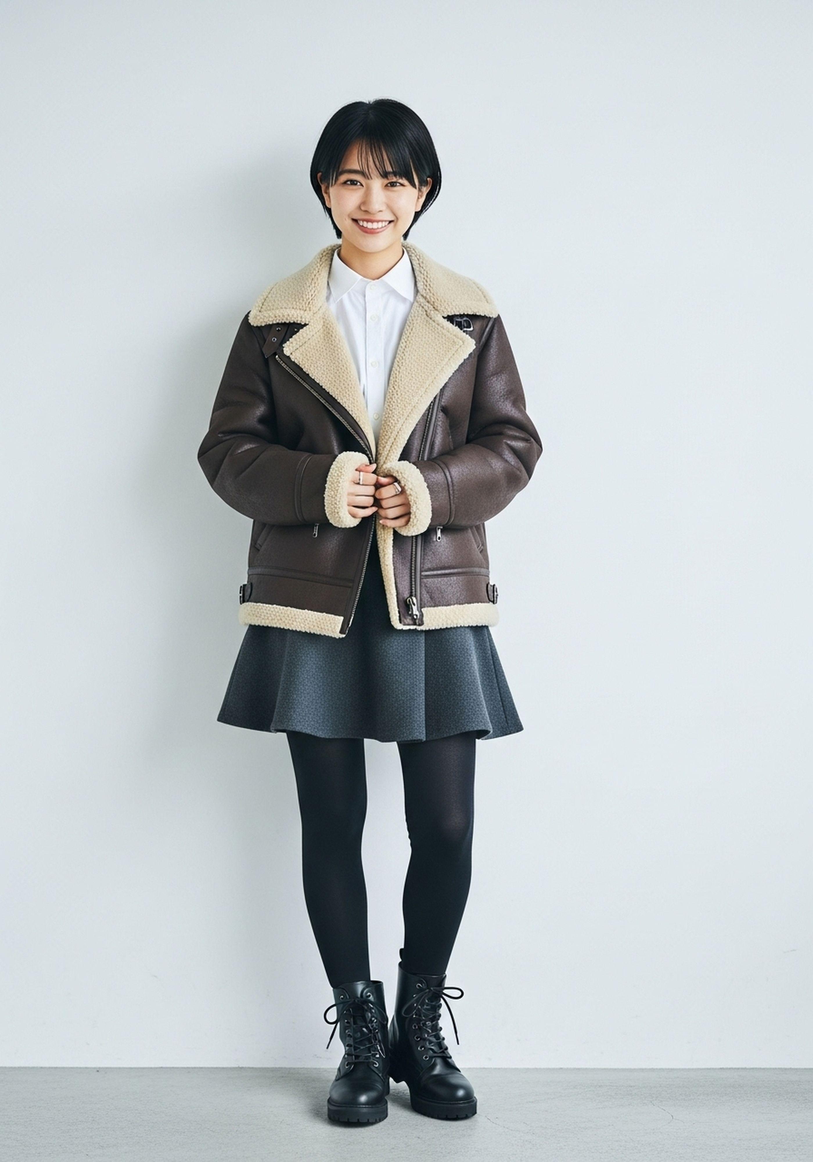 ボア付き革ジャンが流行っているのかな・・・?割とたくさん見かけました。中でもミニスカとゴツいブーツに合わせているのが可愛かった😊