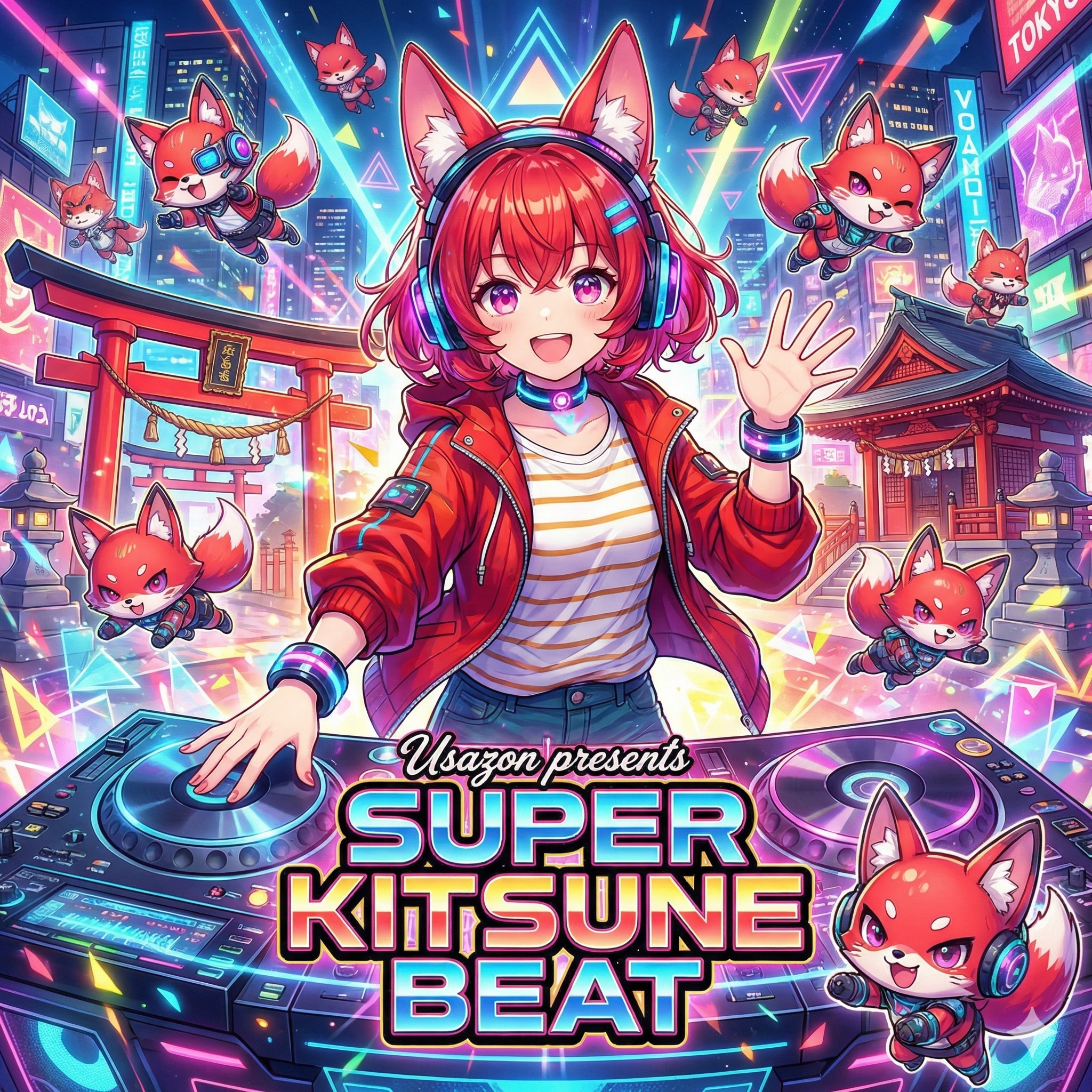 ジャケットはスタイリッシュな大都会と和の象徴である神社。テーマは「洋と和の融合」。現代っ子の狐娘も、伝統的な巫女狐も、みんな一緒に踊り出せ。明るくノリノリの曲が詰まっているよ。モフモフ狐耳を愛するみんなはマストで聞くべし!🦊