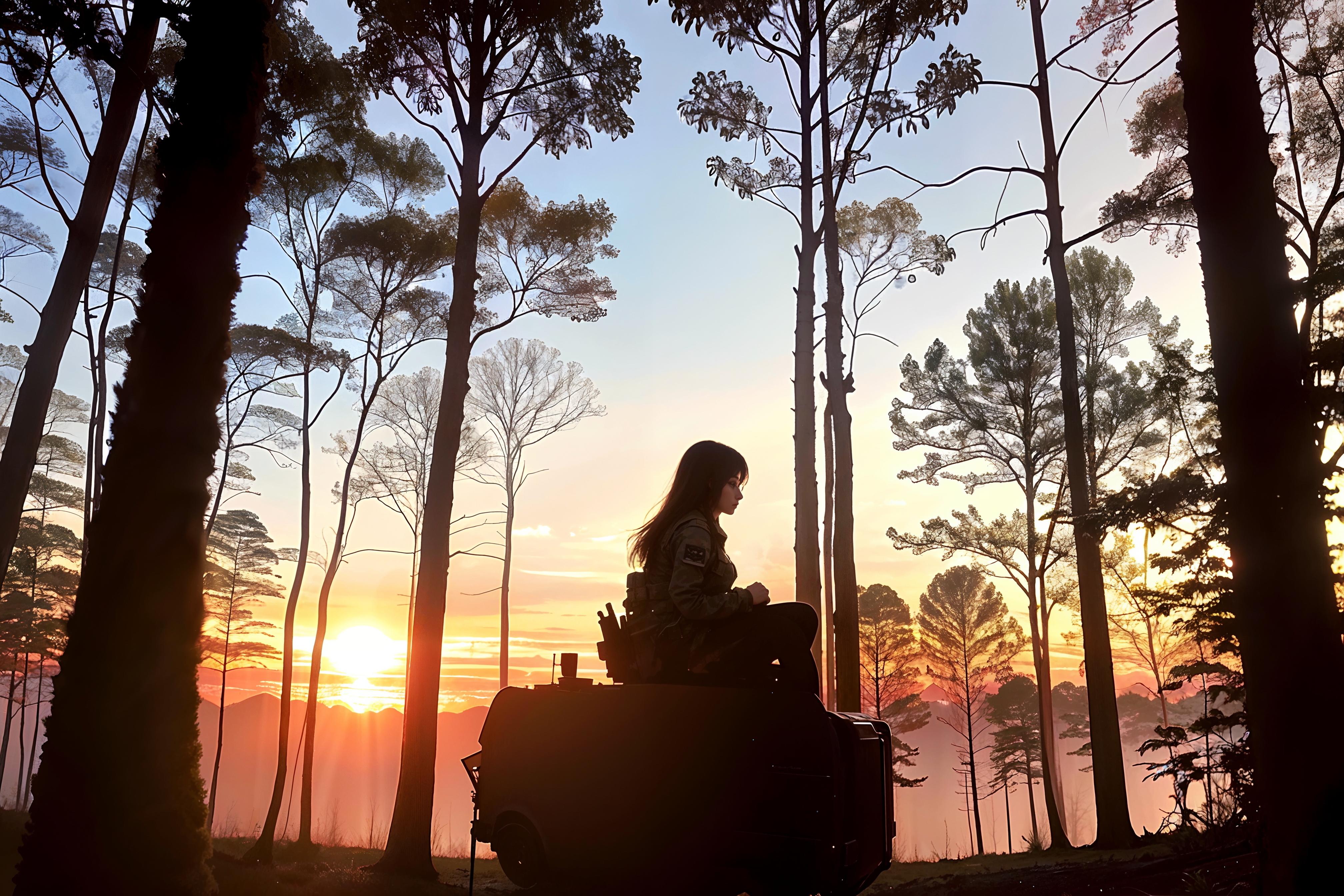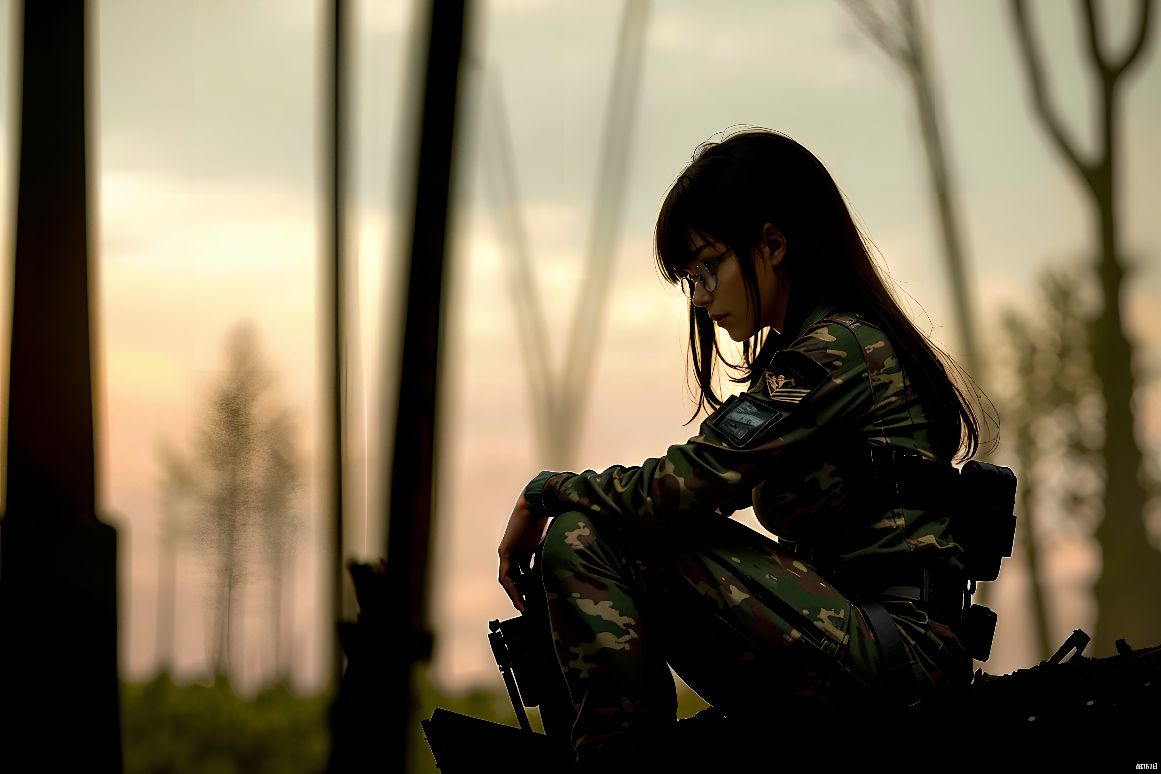 ゆり先生を森に潜入させてカッコ良いサバイバルゲーマーっぽく演出してみました。