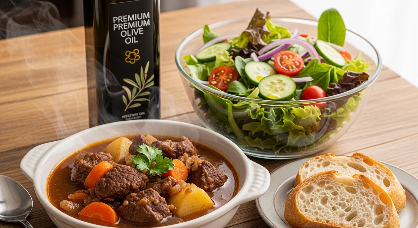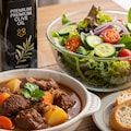 摩訶不思議食堂のビーフシチューとオリーブオイル付きサラダ