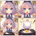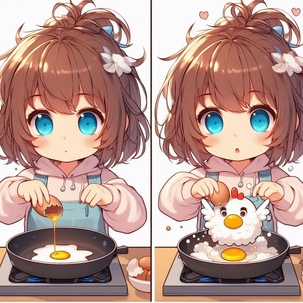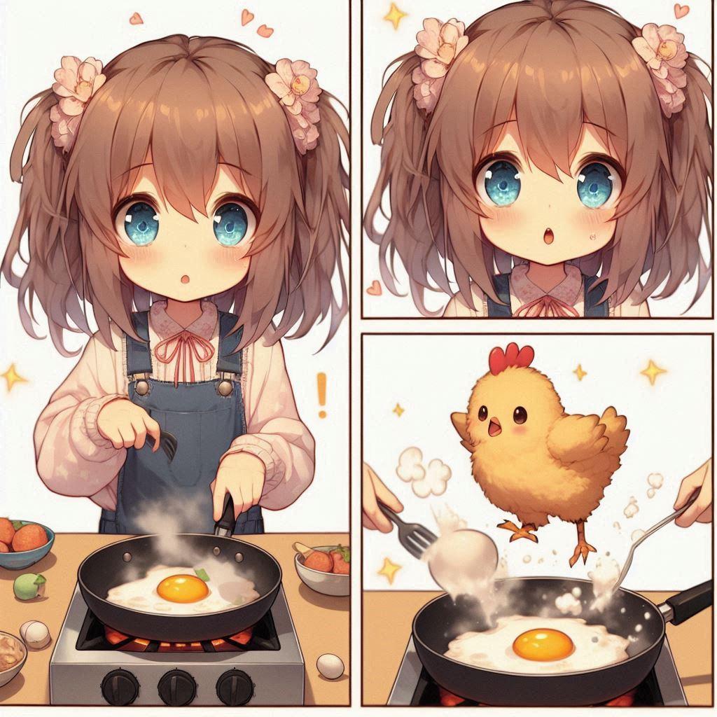 目玉焼きが成長しちゃって驚く小さな女の子