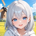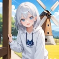 銀髪ちゃんと風車