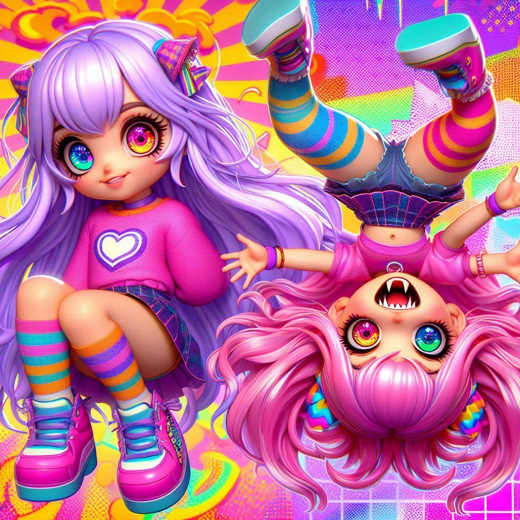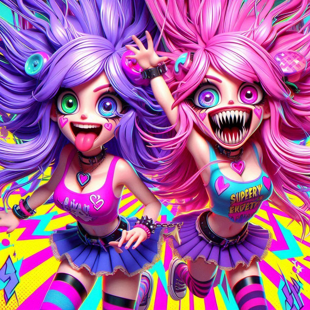紫の髪がさいけ、ピンクの髪がでりこです