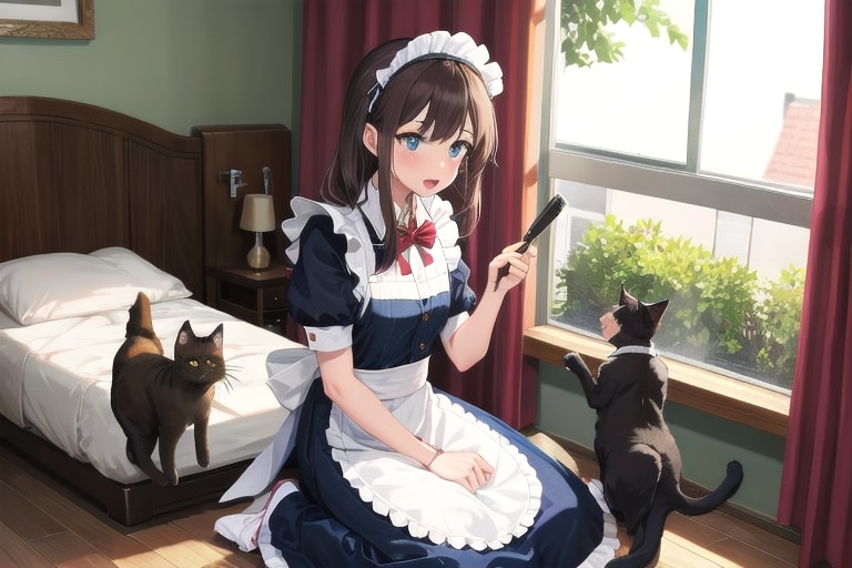 4枚目 1girl,cat,maid,