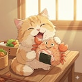 🐱<なかよくくえるんだな