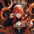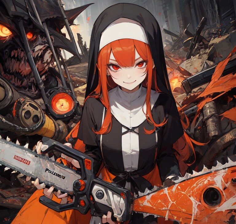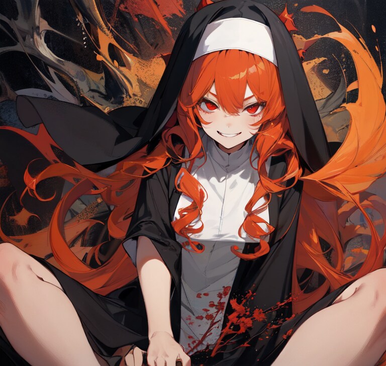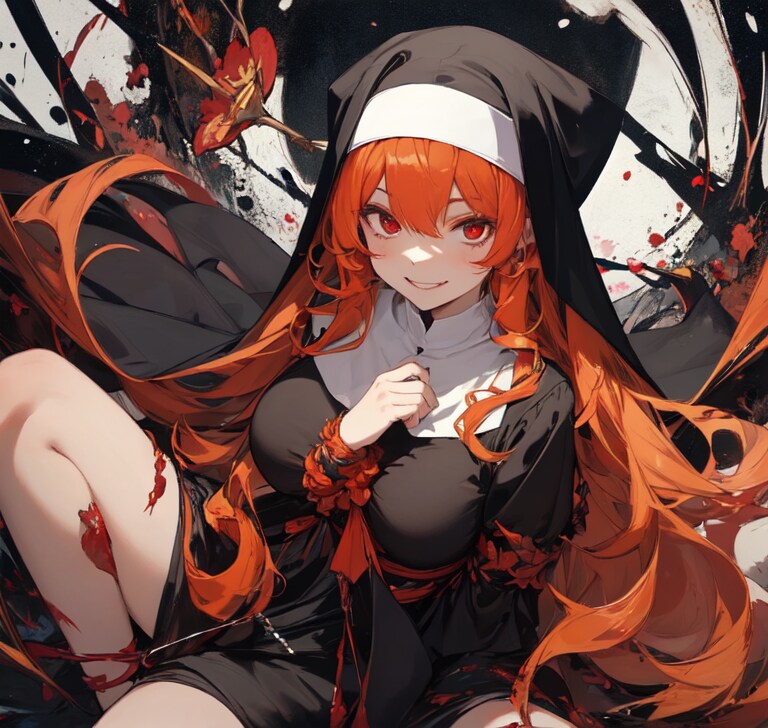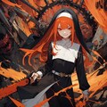 突如轟音とともに壁が破壊され、赤毛の尼僧が目の前に現れる。ぬるりと音がきこえるような動きで。
