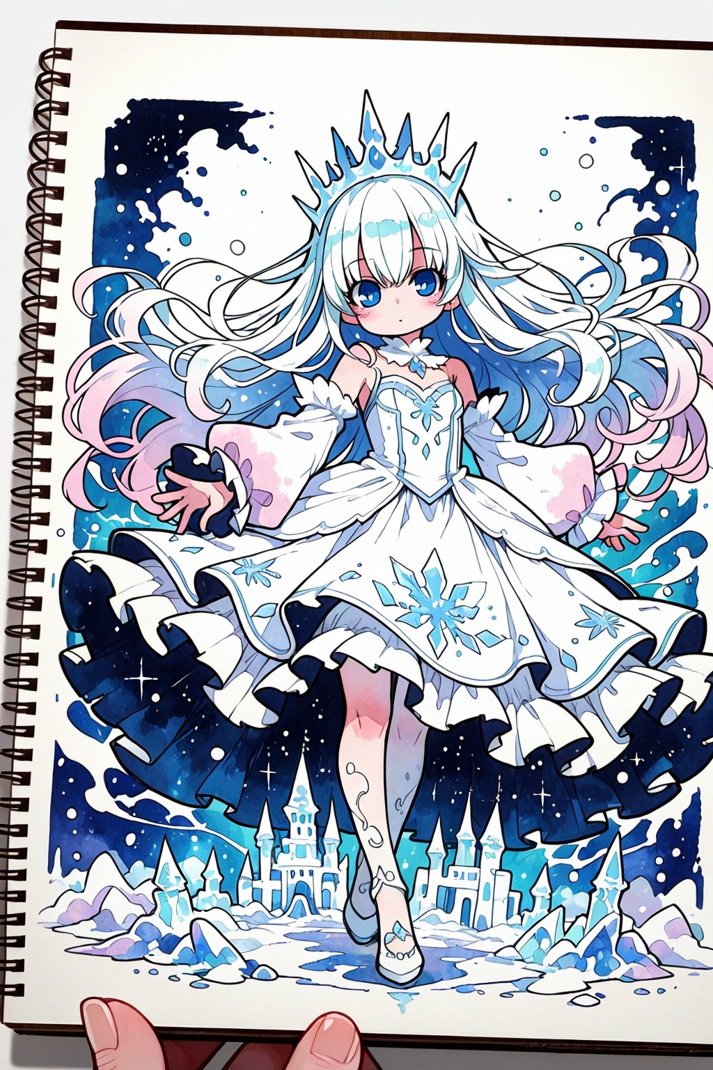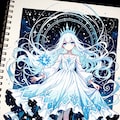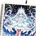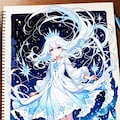 スケッチブックに描かれた氷の精霊ちゃんです😊♪。