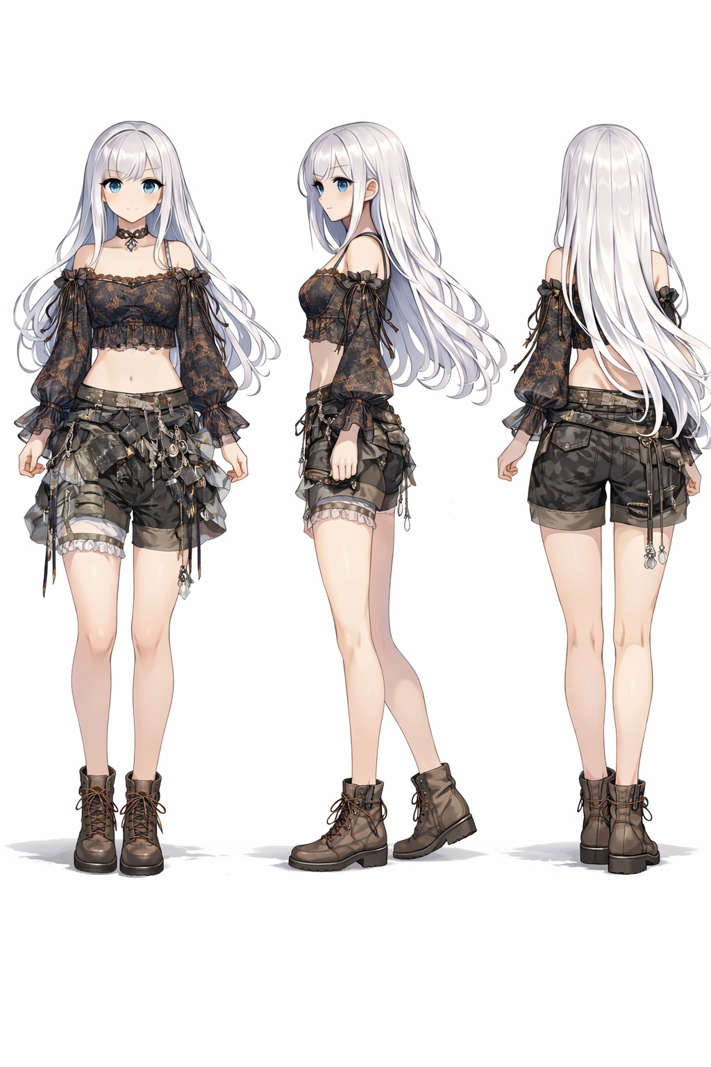 Use the provided three-view character image as the base.