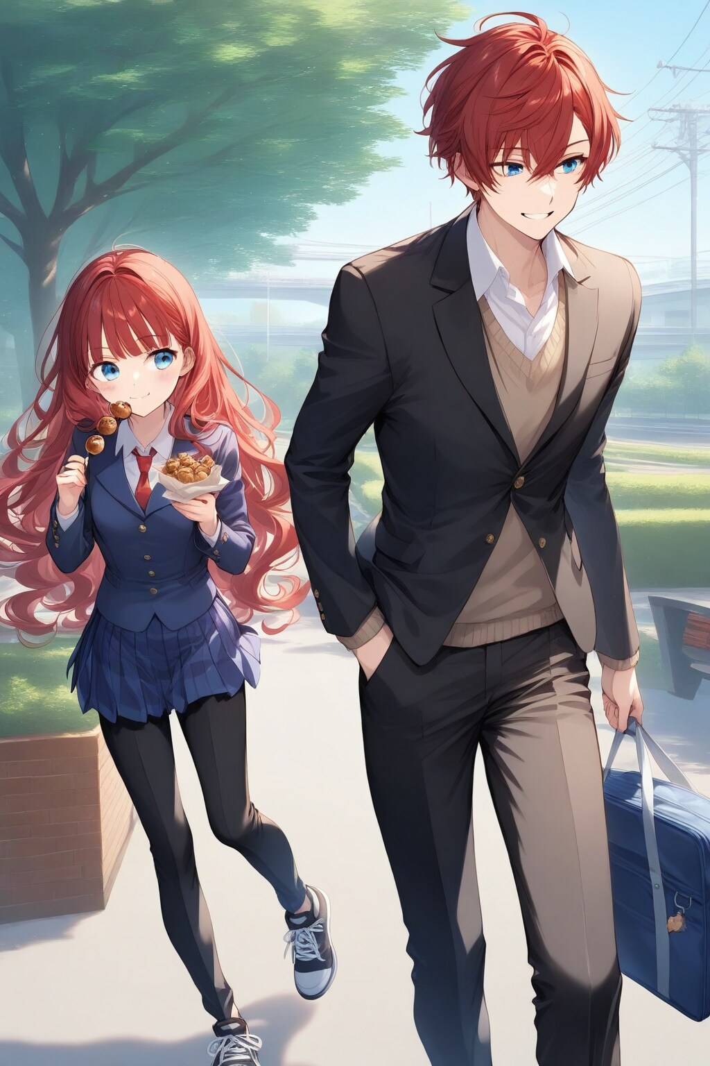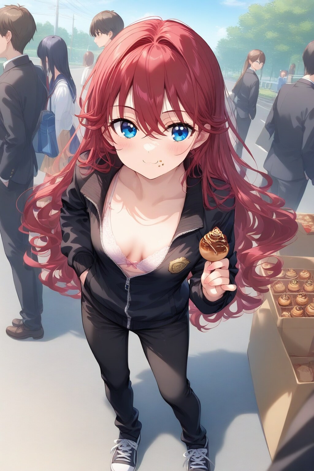 妹の赤髪ちゃん(赤上小鈴)がドーナツを買っているころ、赤髪兄(赤上小織)はタコ焼きを買って買い食いしていたようです。小腹がすいたのでしょうか?