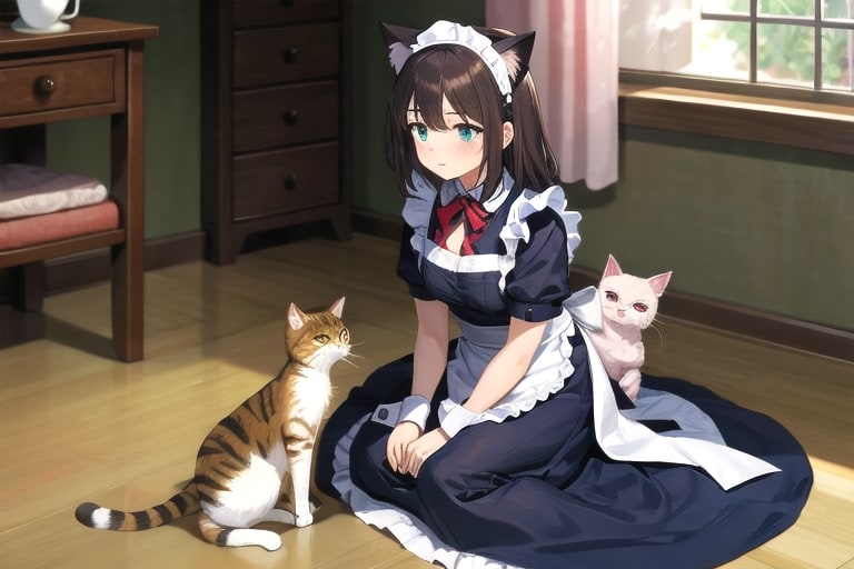 4枚目 1girl,cat,maid