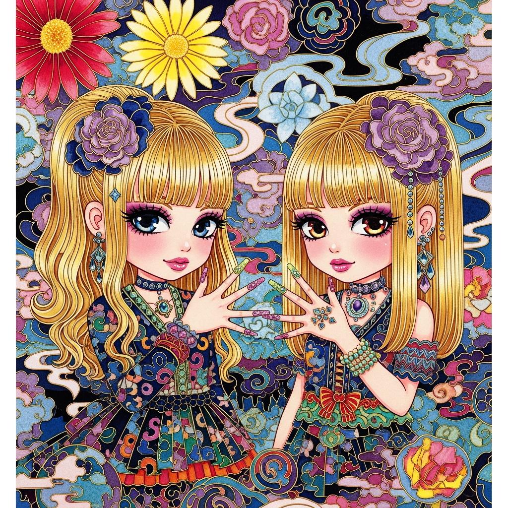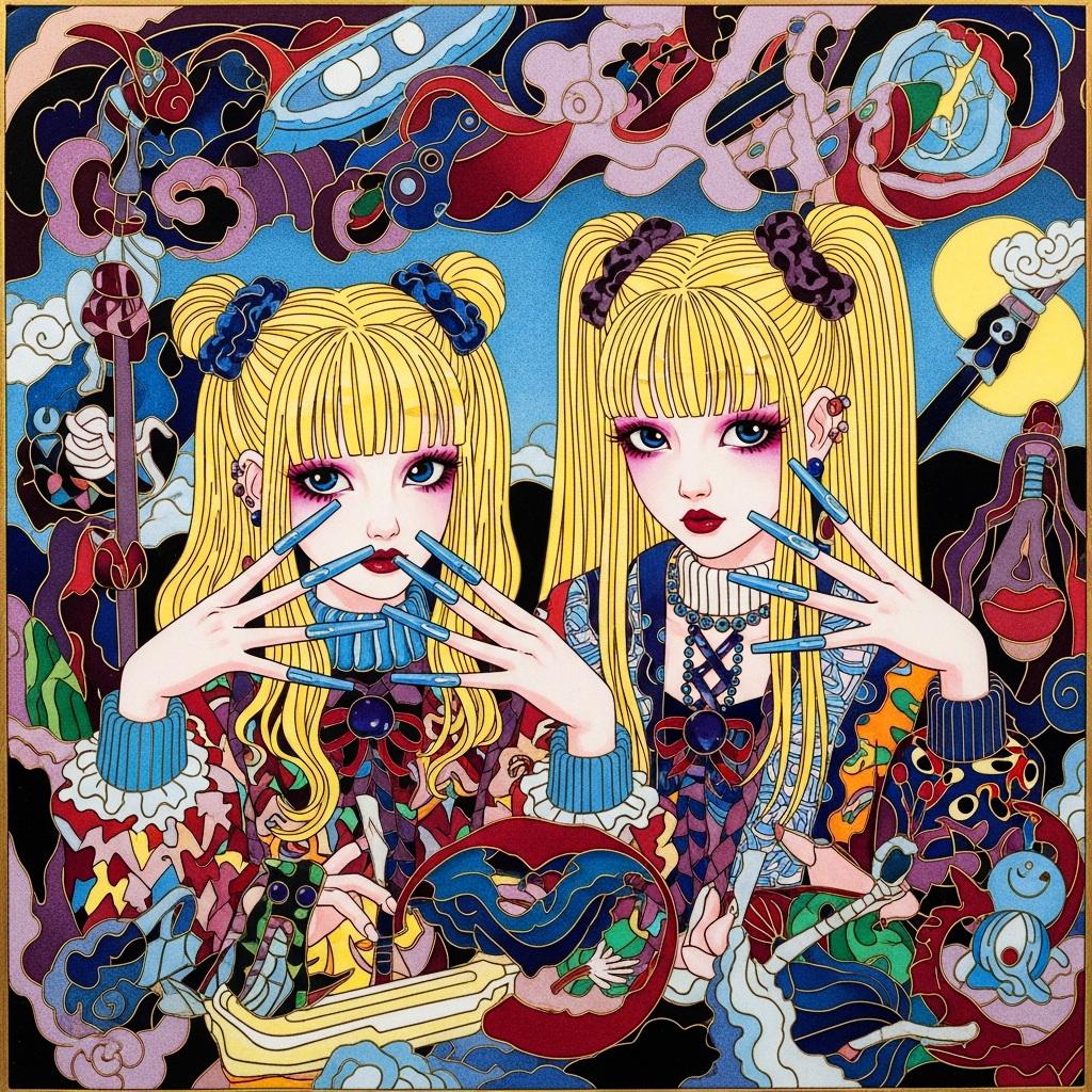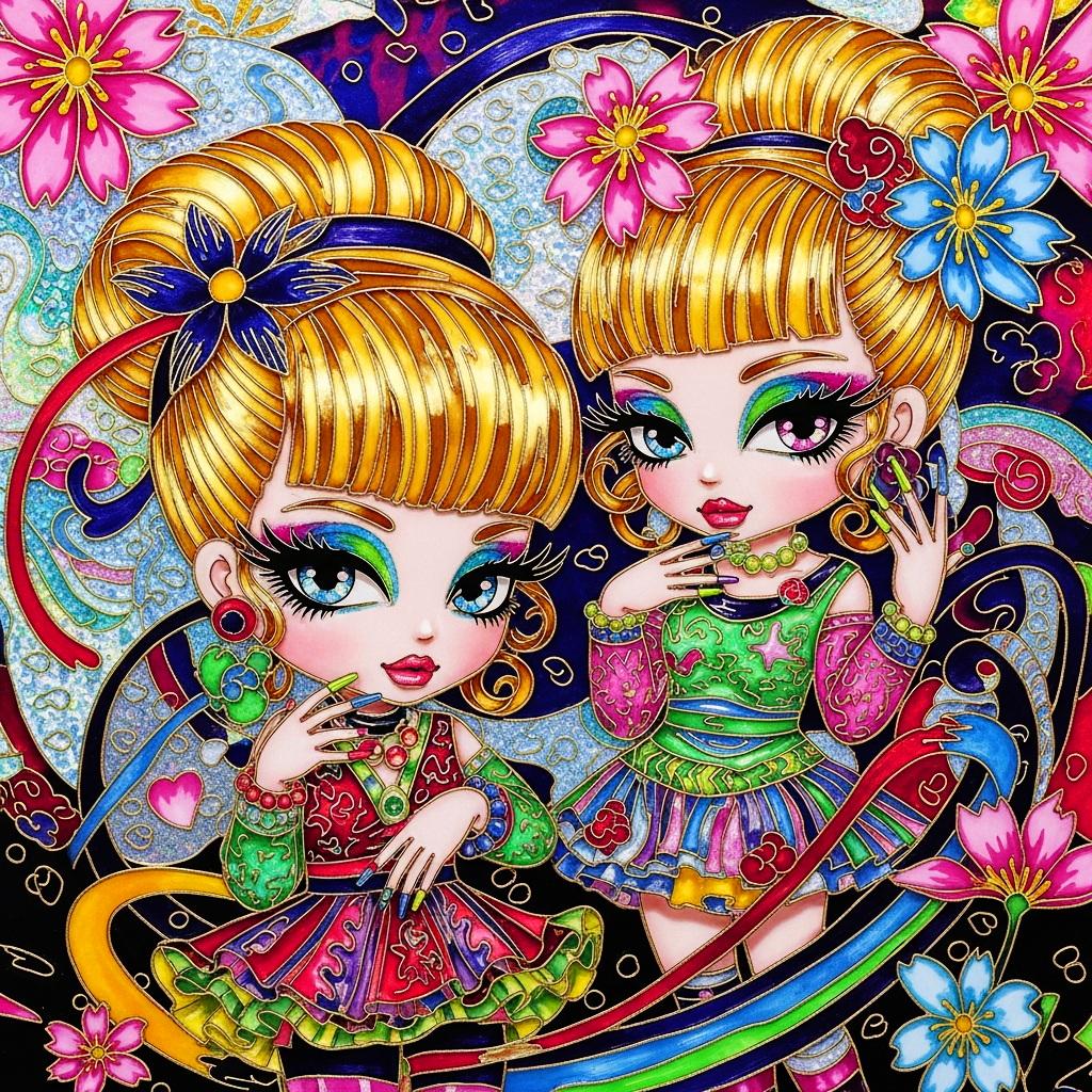 私の中でギャルといえば派手なイメージしかないので、とりあえず色彩豊かな七宝焼風に描いてみました。