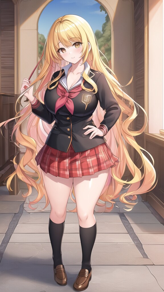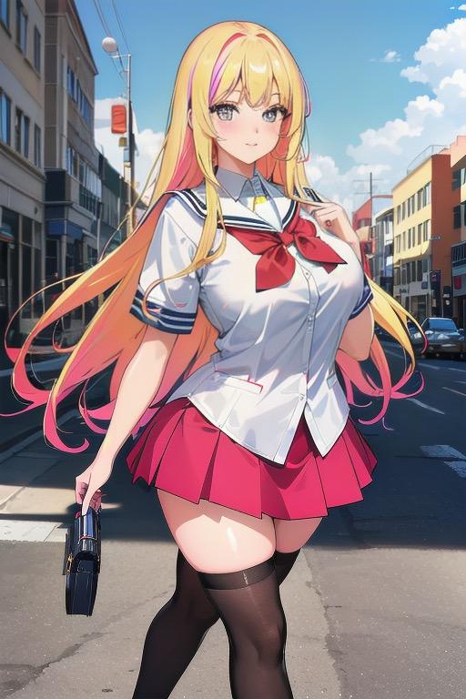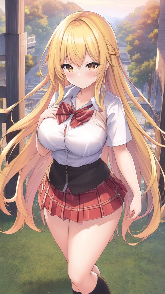 金髪ロングヘアJKです。黒髪より金髪の方が派手な感じがしますね。