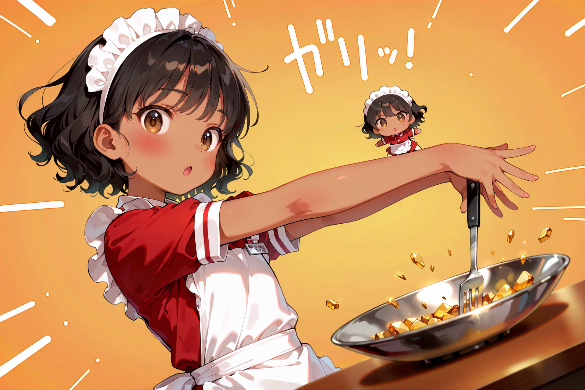 ちびキャラウェイトレスさんシリーズを制作中に生成された謎の1枚です。