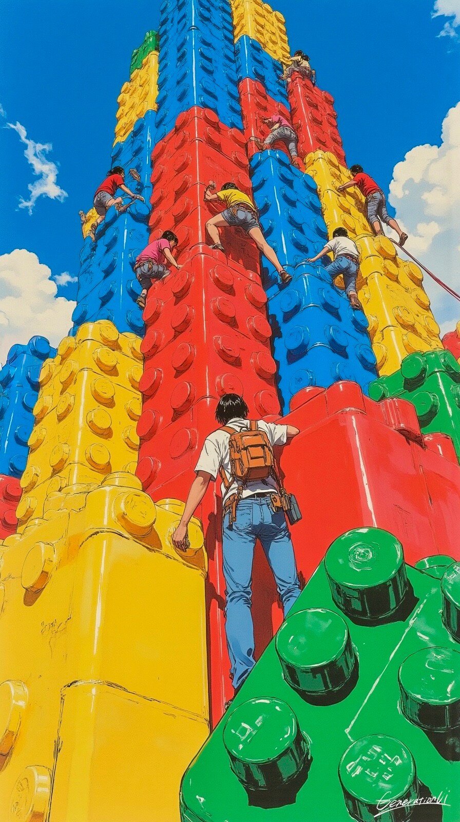 青空の下のカラフルクライミング/スマホ壁紙アーカイブ