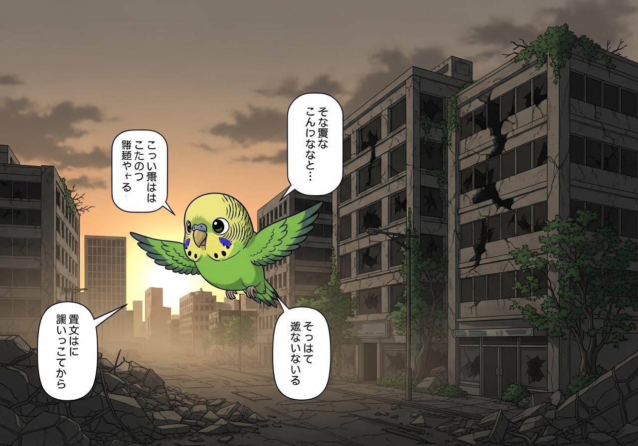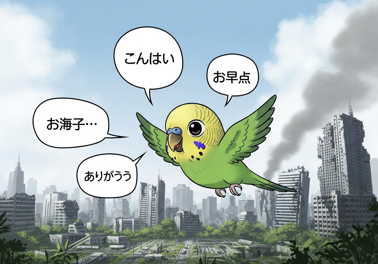 終末の世界でインコさんが何か喋ってる