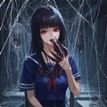 jacket partially removed, heart in eye, burnt clothes, holding fishing rod, kanji, doujin cover, pentagram, tape gag, adjusting headwear, red socks, friends, cloud print, coke-bottle glasses, oral invitation, competition school swimsuit, barbell piercing, gradient legwear, prisoner, blood on breasts, wind chime, carrying over shoulder, tape measure, flaming weapon