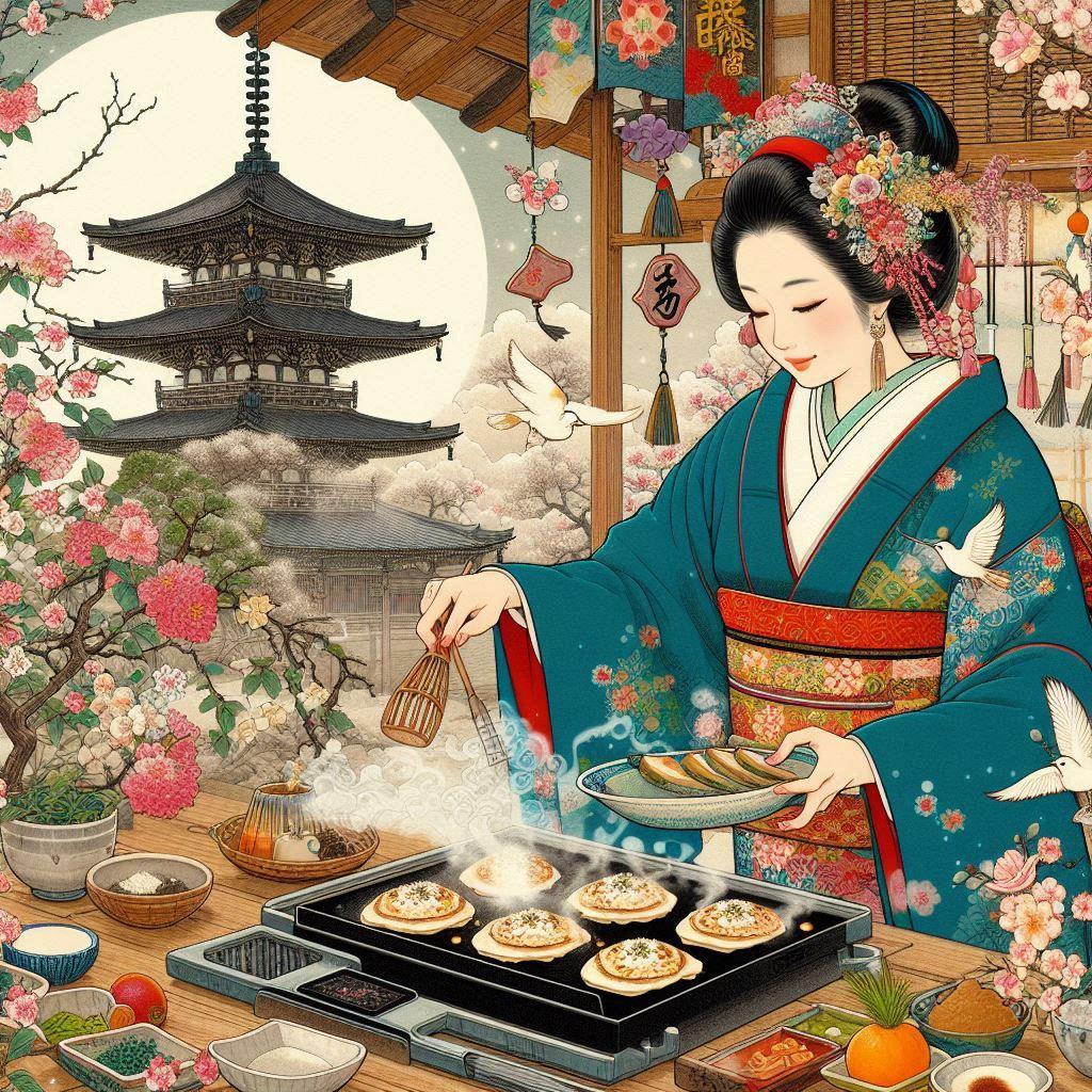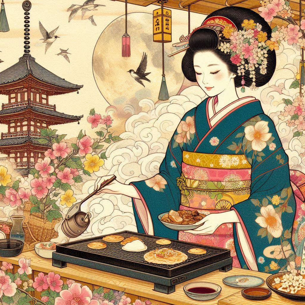 お好み焼きを焼く女