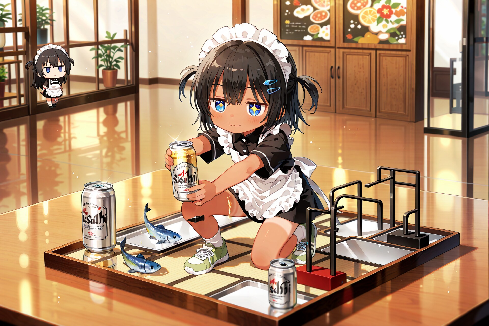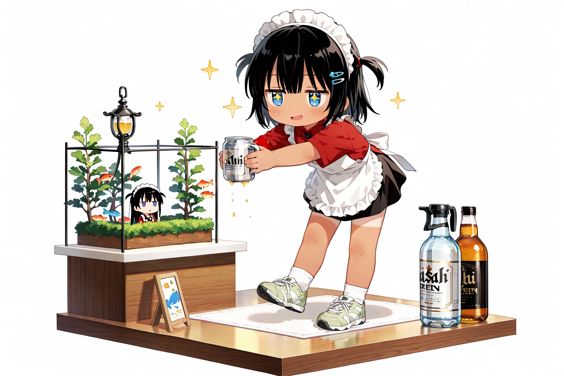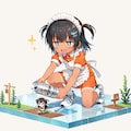 絵的なインパクトを優先していますので、こなつちゃんが具体的に何をやっているのか、やりたいのかは、制作者本人でも謎ですw