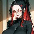 red eyes, sharp face, wide-set eyes, red moist lips, (huge breasts:1.4)