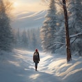 detailed background, depth of field, rimlighting, specular highlights on the snow, atmospheric lighting, melancholic winter scene,