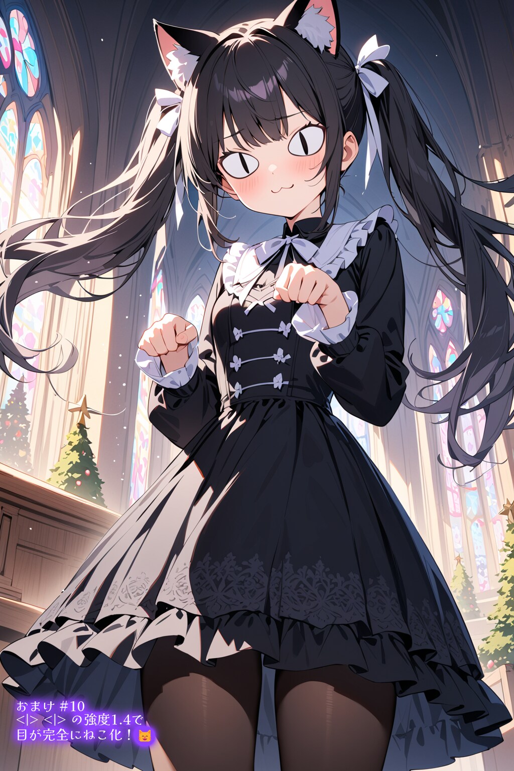 猫キャラだけに「⑥にゃっ!」を試しました。<|> <|>, :3, pow paw pose, の呪文を追加します。