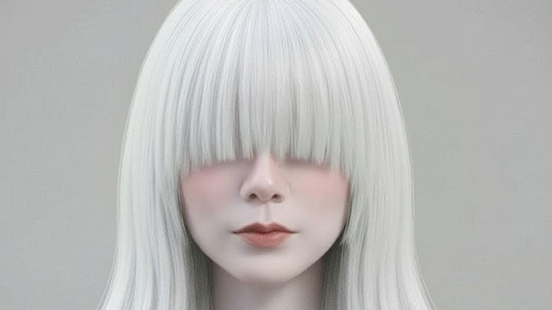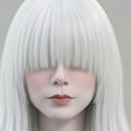 目は隠れているか、白い瞳です。
