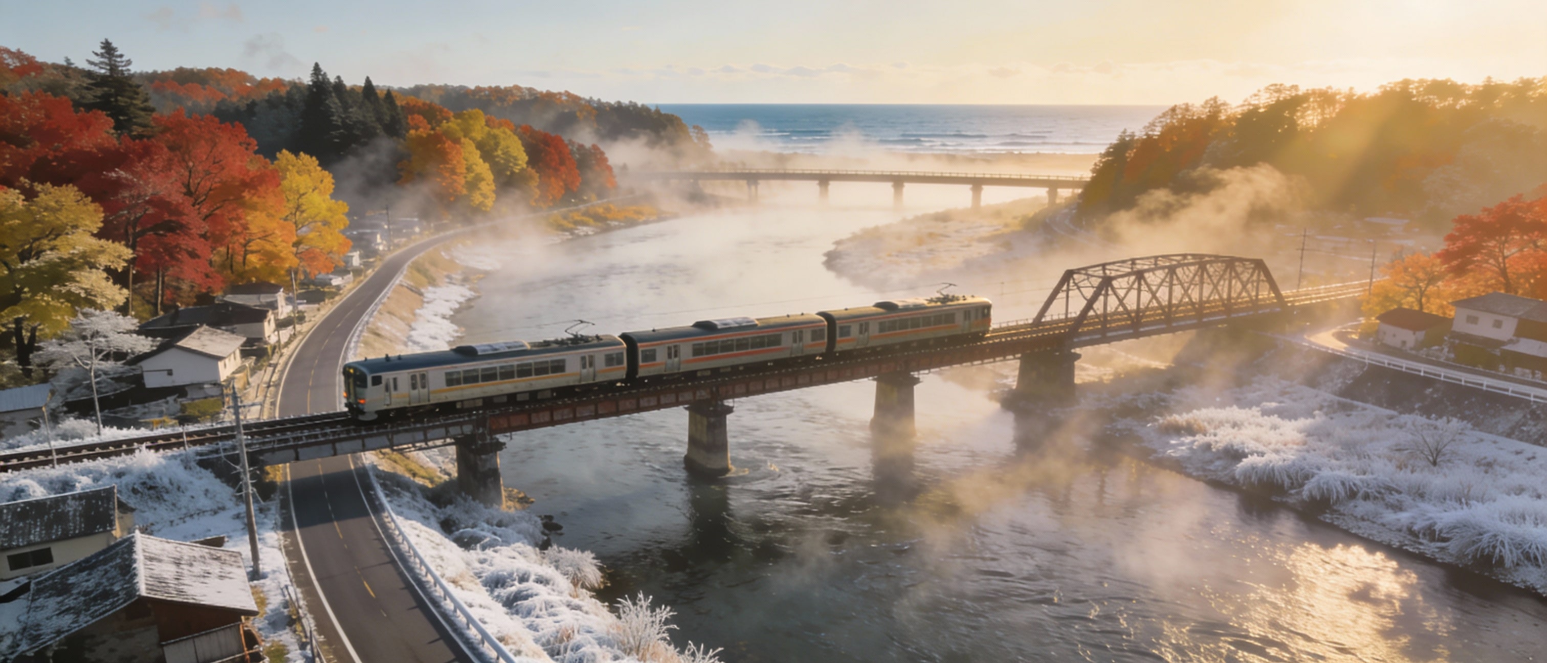 朝靄とローカル線(Seedream4.5)