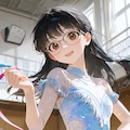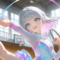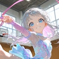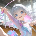 鈴木ちゃん(最新プロンプト)とうちの子ちゃんでやりましたが、うちの子ちゃんは背が高いからちょっと新体操と言う雰囲気じゃないかなぁ。あと1枚だけ目のハイライトが消えちゃったのでそれはボツです(ちょっと怖い)
