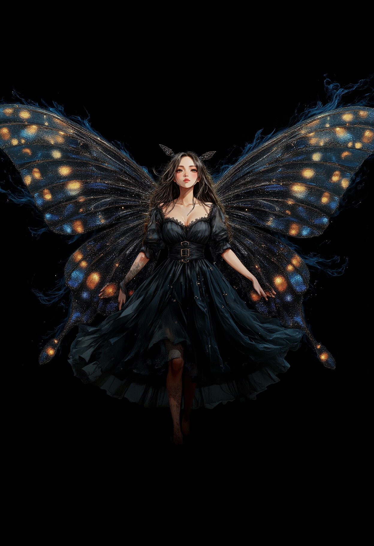 Steps: 30, Sampler: Euler, Schedule type: Simple, CFG scale: 1, Distilled CFG Scale: 3.5, Seed: 3073601101, Size: 832x1216, Model hash: 3f97fdc57a, Model: flux1-dev, Denoising strength: 0.4, ADetailer model: person_yolov8n-seg.pt, ADetailer prompt: "lyh_niji, A girl in black dress with large black butterfly wings is flying\ndetailed face\n<lora:Expressive_Watercolor_Ink_wash:0.8> ArsMJStyle, Expressive Watercolor Ink Wash <lora:OB-near-watercolor:0.5> yunran <lora:Unfinished_Sketch:0.5> unfinished sketch, sketchy, line art", ADetailer confidence: 0.4, ADetailer dilate erode: 4, ADetailer mask blur: 4, ADetailer denoising strength: 0.7, ADetailer inpaint only masked: True, ADetailer inpaint padding: 32, ADetailer use separate checkpoint: True, ADetailer checkpoint: lyhAnimeFlux_v4Niji [2abace2516], ADetailer use separate VAE: True, ADetailer VAE: lyh_anime_flux_ae.safetensors, ADetailer model 2nd: mediapipe_face_full, ADetailer prompt 2nd: "lyh_niji, A girl in black dress with large black butterfly wings is flying\ndetailed face\n<lora:Expressive_Watercolor_Ink_wash:0.8> ArsMJStyle, Expressive Watercolor Ink Wash <lora:OB-near-watercolor:0.5> yunran <lora:Unfinished_Sketch:0.5> unfinished sketch, sketchy, line art", ADetailer confidence 2nd: 0.4, ADetailer dilate erode 2nd: 4, ADetailer mask blur 2nd: 4, ADetailer denoising strength 2nd: 0.7, ADetailer inpaint only masked 2nd: True, ADetailer inpaint padding 2nd: 32, ADetailer use separate checkpoint 2nd: True, ADetailer checkpoint 2nd: lyhAnimeFlux_v4Niji [2abace2516], ADetailer use separate VAE 2nd: True, ADetailer VAE 2nd: lyh_anime_flux_ae.safetensors, ADetailer version: 24.11.1, Hires upscale: 1.5, Hires upscaler: Latent, Lora hashes: "aidmaMJ6.1_v0.5_3: 248c70f4d245, Midjourney_Dreamlike_Fantasy_FLUX_LoRA: 6d13c9aeb40f", Version: f2.0.1v1.10.1-previous-528-ge55cde9b, Diffusion in Low Bits: Automatic (fp16 LoRA), Module 1: clip_l, Module 2: t5xxl_fp16, Module 3: ae