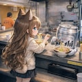 名古屋駅できしめんを食べる小さな女の子