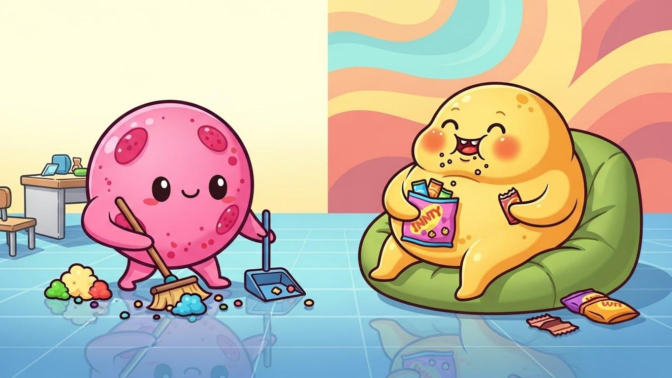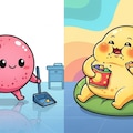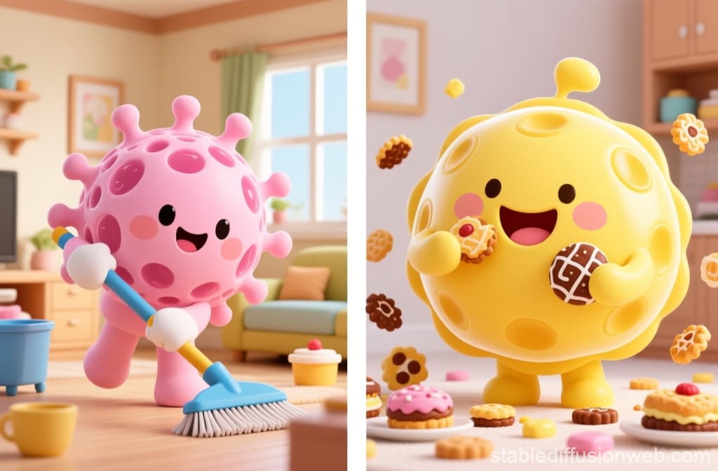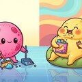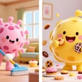 ピンク色の生体細胞マスコット・ももほうくんが、
