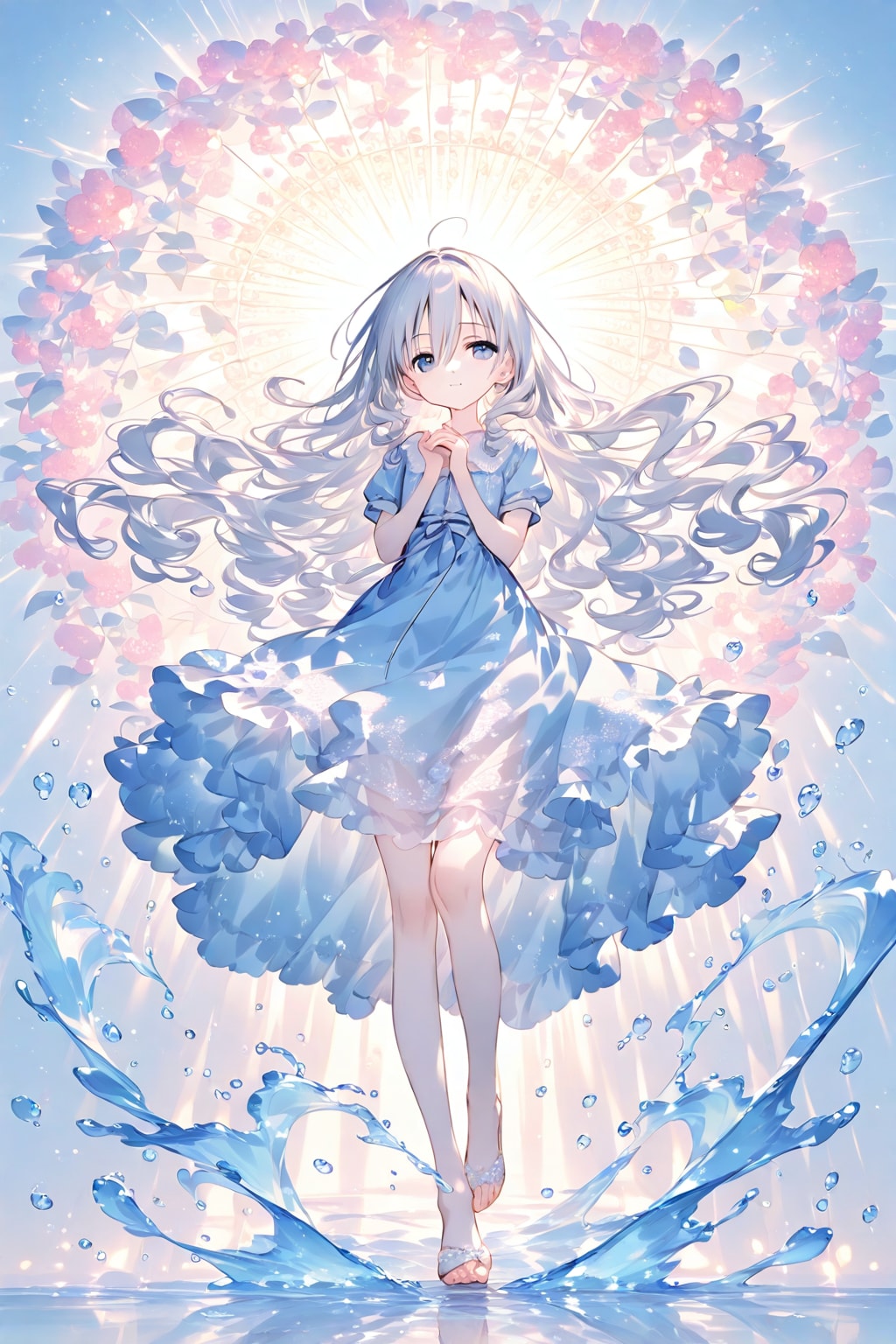 光を纏う、甘く透明なひととき。水のドレスを纏った少女は静かに微笑む。