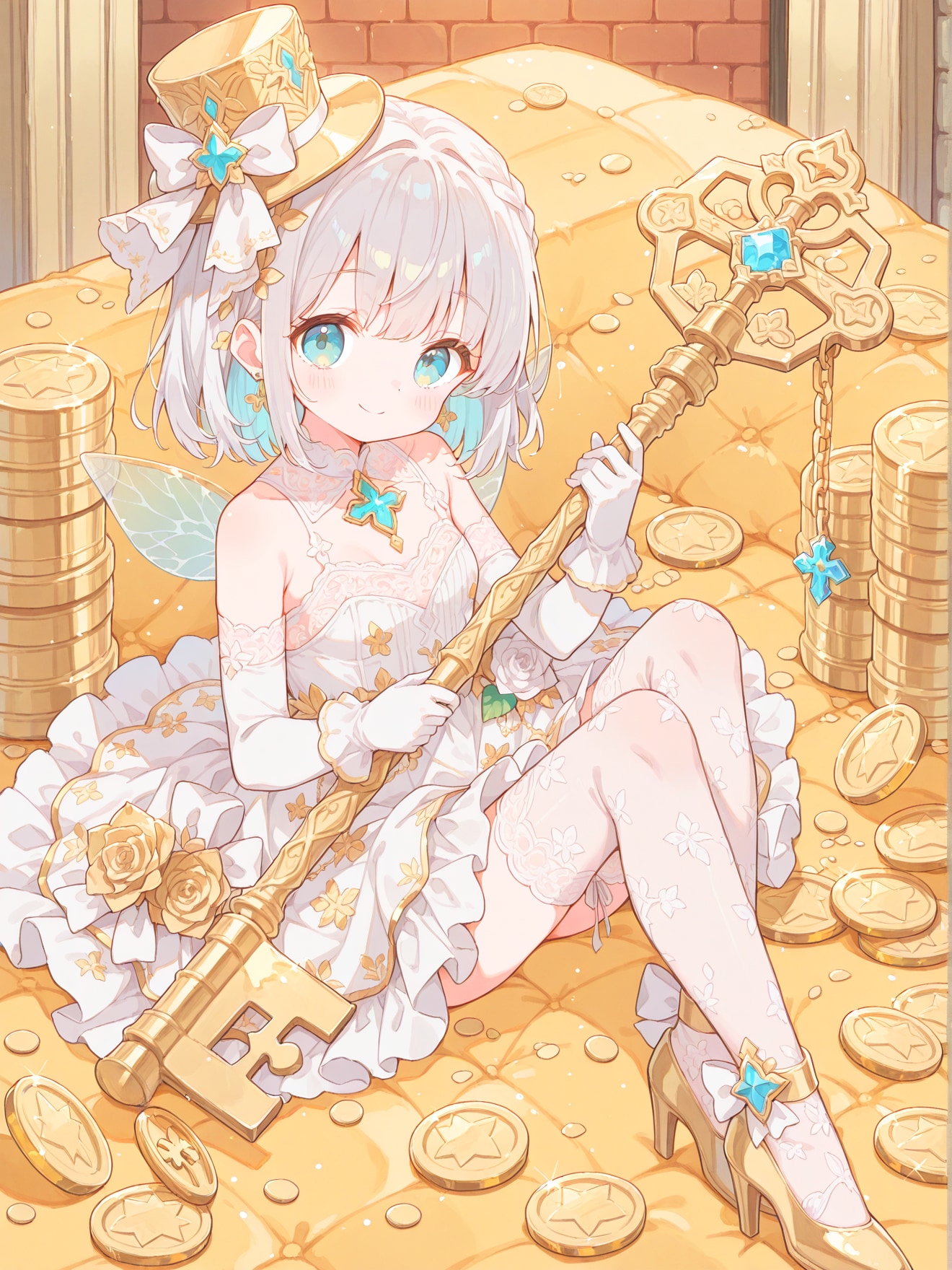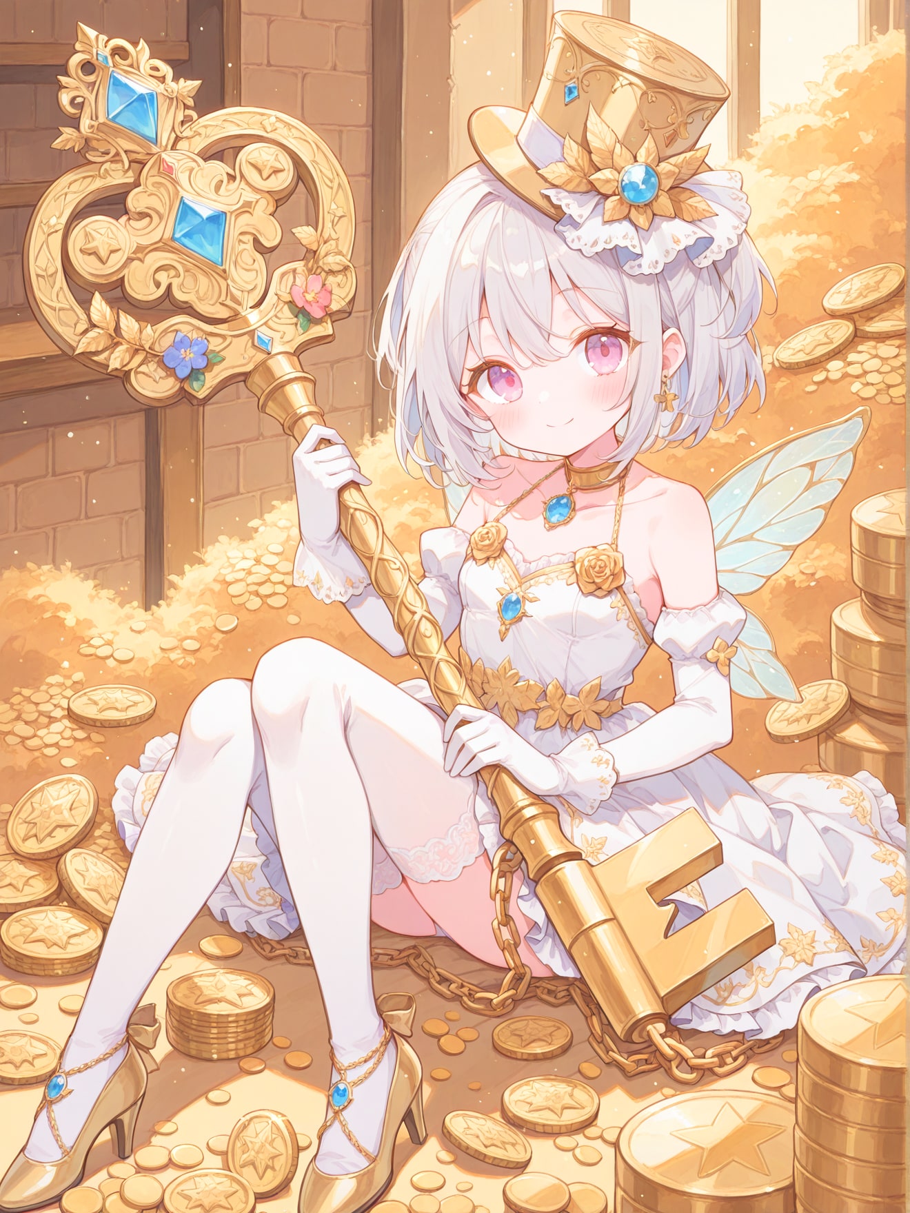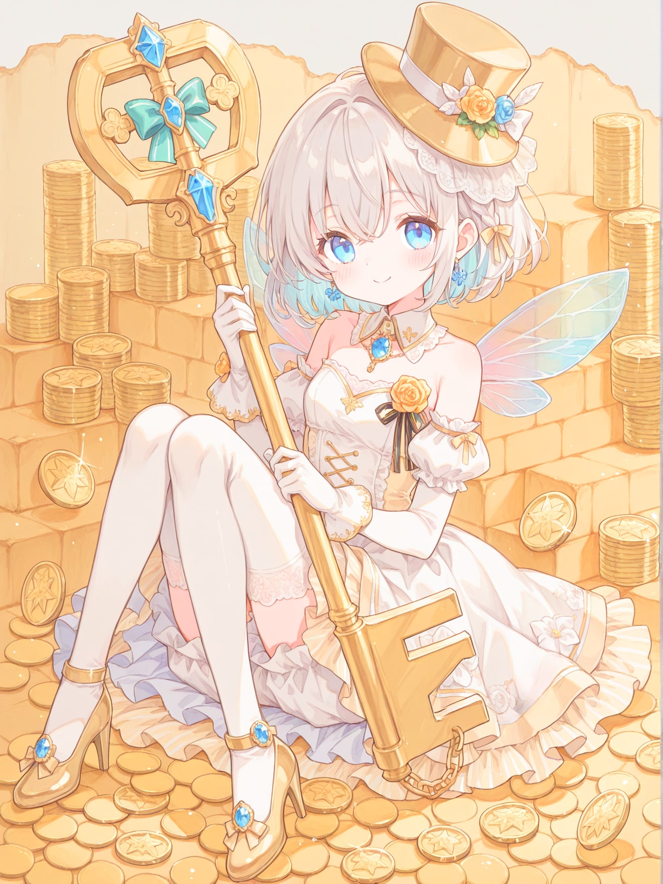 金貨で一杯の宝物庫の鍵を持ったシルクハットの妖精を作ってみました