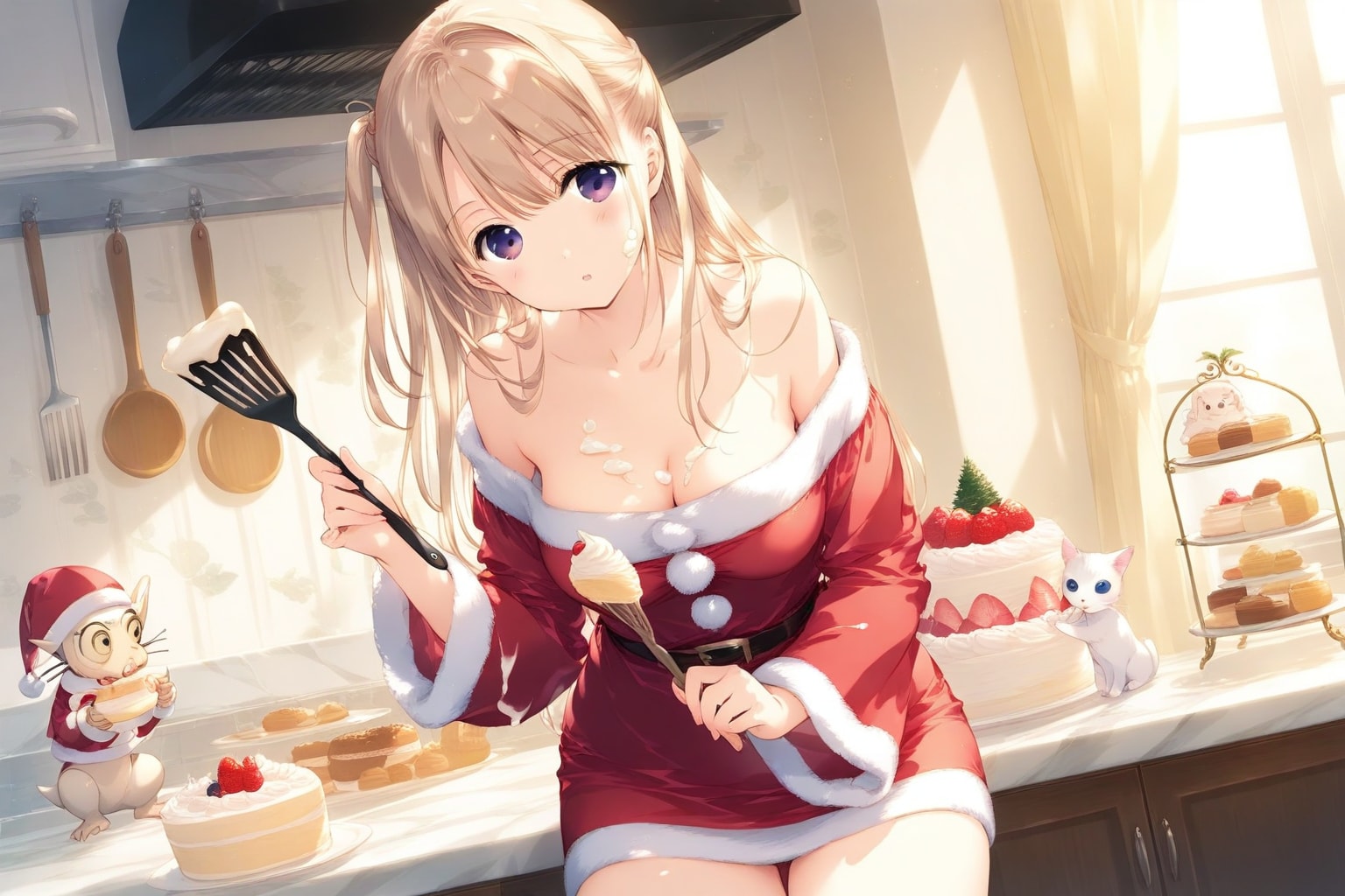 画面中、壁とか服に飛び散ってる生クリームは仔猫や妖精さんが後ほど舐め取って綺麗にしてくれました。