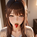 そこで優しく緊張をほぐそうと苺を咥えながら「あんたもイチゴ食べる?」と弟に少しフザケる様に声をかけたら、却って血が頭に登って弟が卒倒してしまった...というありがた迷惑?なシチュエーションですw。